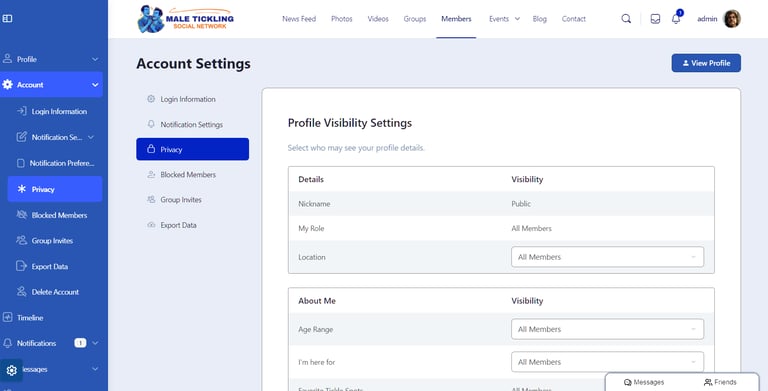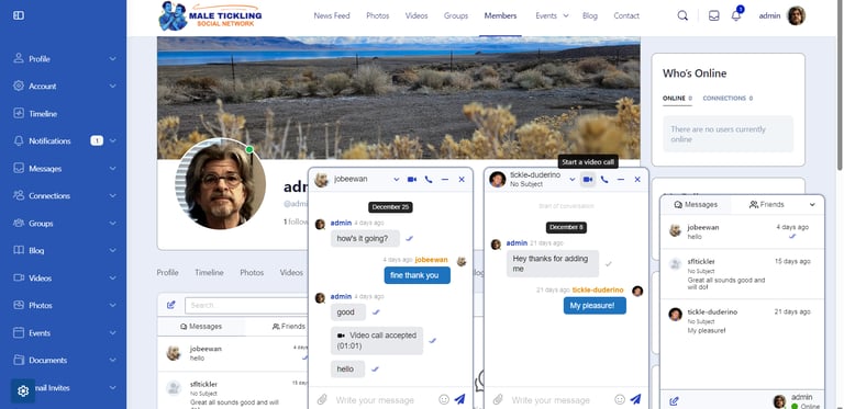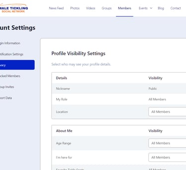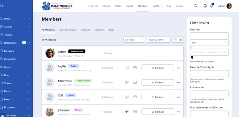 Private messaging, friend connections, and following other members help keep you in touch, and arrange male tickling meet-ups.